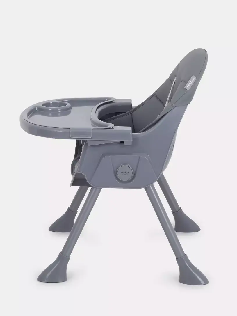 Регулируется по высоте в 2 положениях: первый уровень — классический высокий стульчик для кормления, второй уровень — низкий стул-стол для творчества.