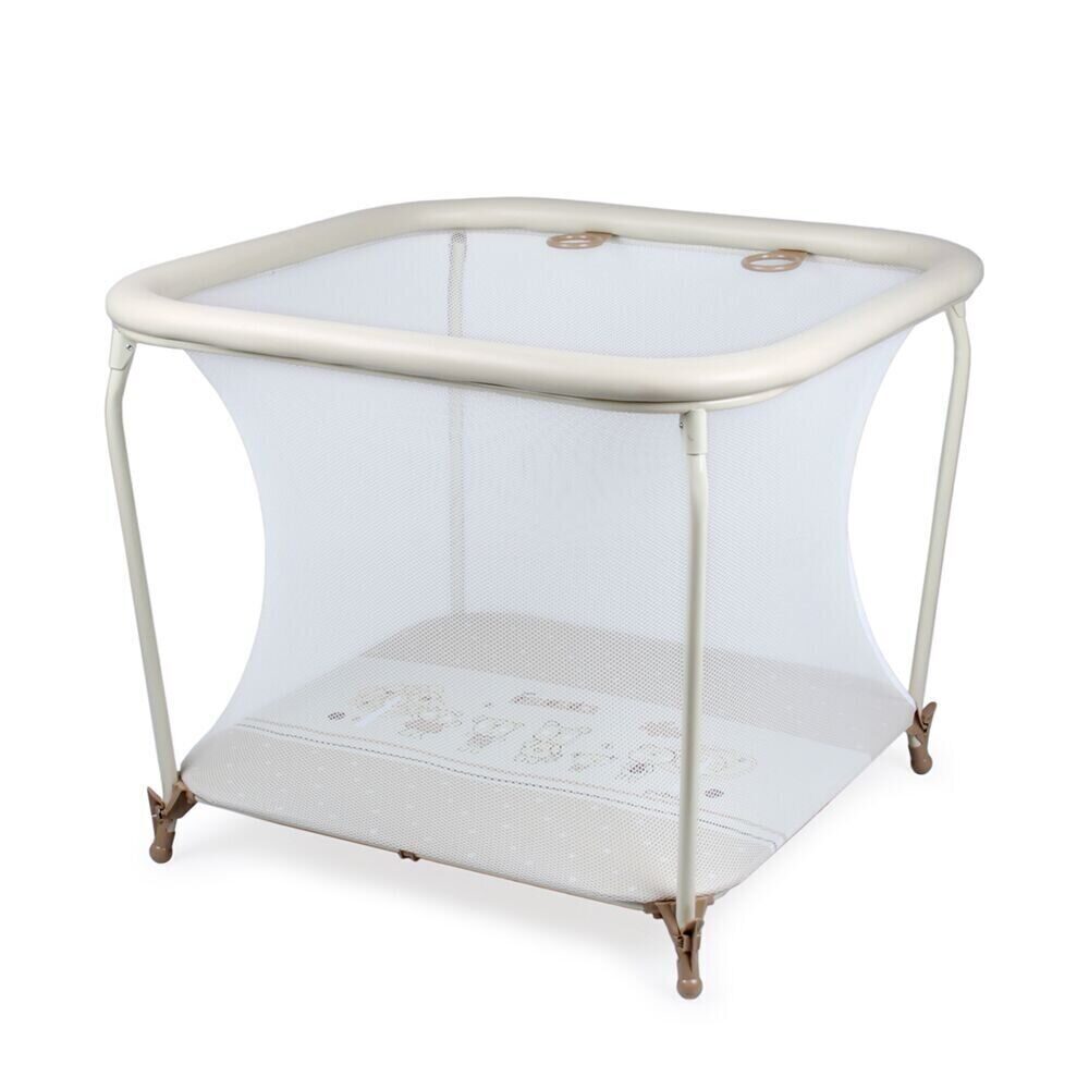 Стенки выполнены из прочной сетки с большими ячейками, которые не мешают малышу фокусировать взгляд на предметах за манежем.