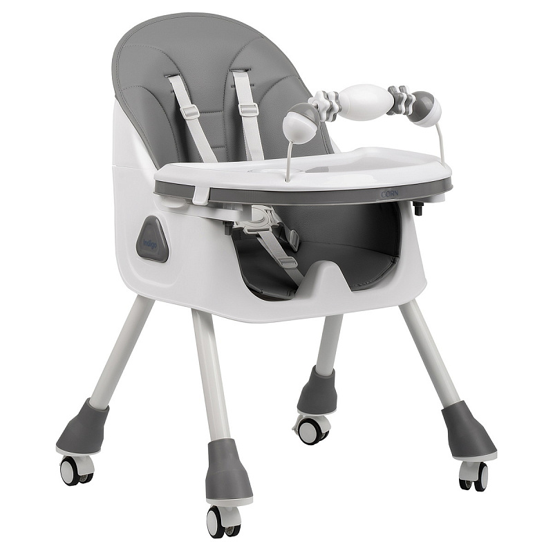 Стул для кормления Indigo Corn тёмно-серый — универсальный стульчик-трансформер, который помогает организовать место для приёма пищи или развивающих игр ребёнка. Особенности: