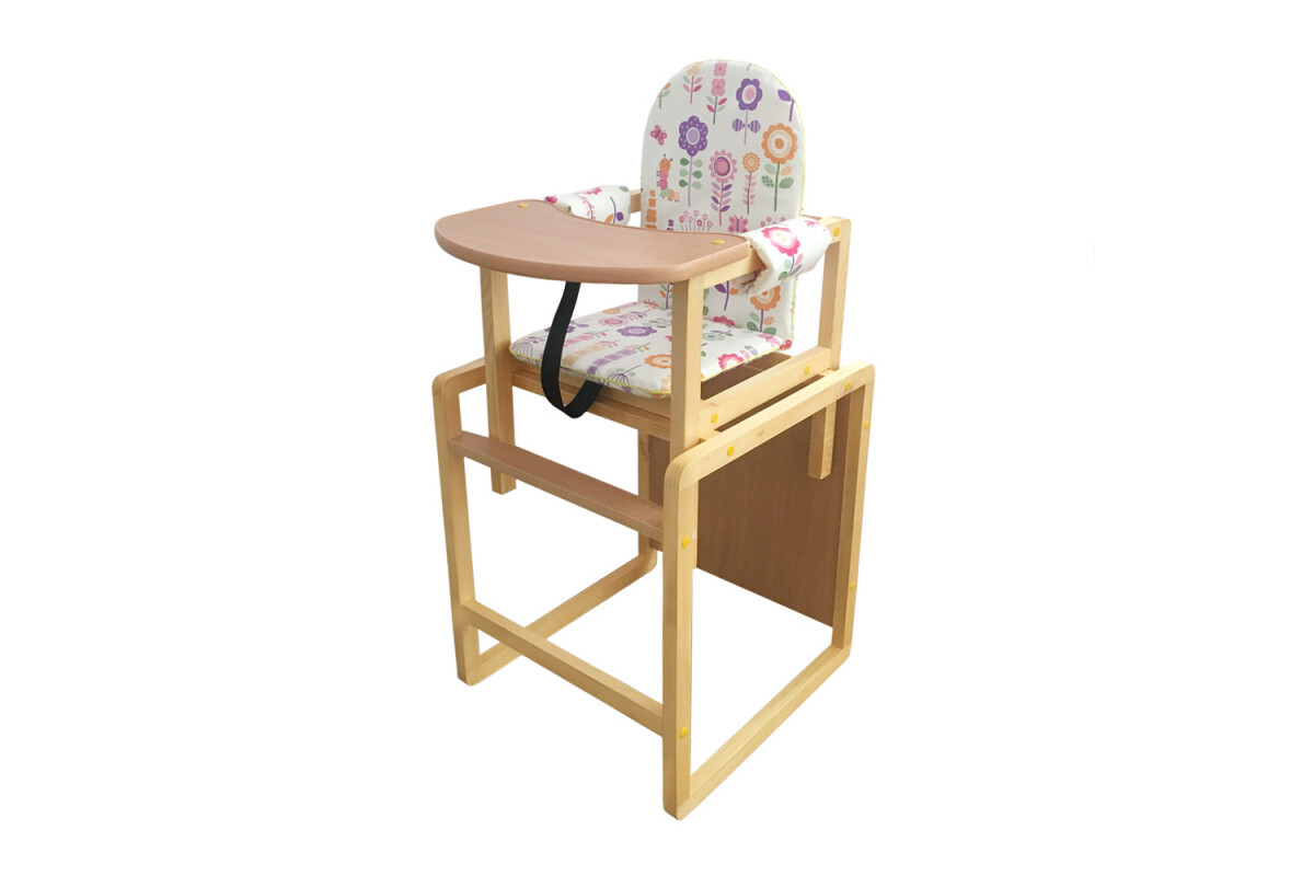 Стол-стул для кормления — эргономичная модель, которая легко превращается в комплект мебели для детского творчества. Трансформер принимает два положения: стульчик и кресло со столиком. Особенности: